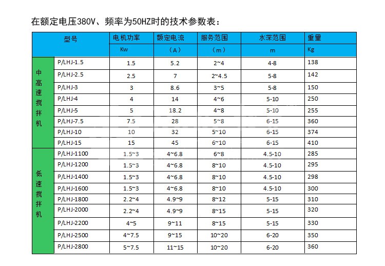 PHJ型浮筒式潛水?dāng)嚢铏C,根據(jù)使用場合不同,分為高、中、低三種攪拌系列: