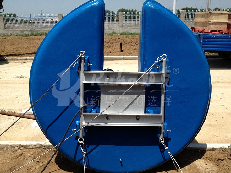 ⑴.將四只浮筒包箍分別緊固在浮箱四邊的中間位置,然后將固定用鋼絲繩的一端用卸扣連接在包箍上的耳環(huán)上。安裝時應(yīng)根據(jù)現(xiàn)場情況,準(zhǔn)備四根足夠長且牢固的繩索,分別拴牢鋼絲繩的另一端。