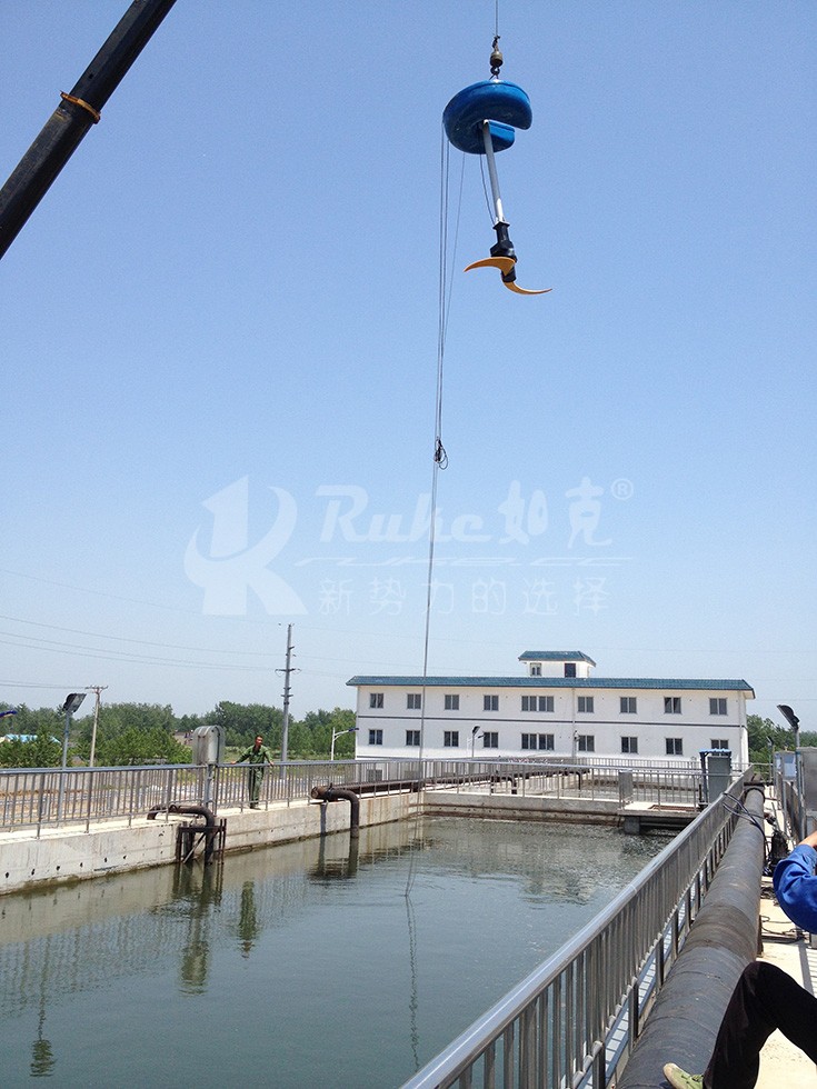 ⒊攪拌機的動力為潛水電機,應(yīng)用時潛入液下工作,不僅冷卻條件好,適用深度范圍廣,而且不會產(chǎn)生噪聲等二次污染。