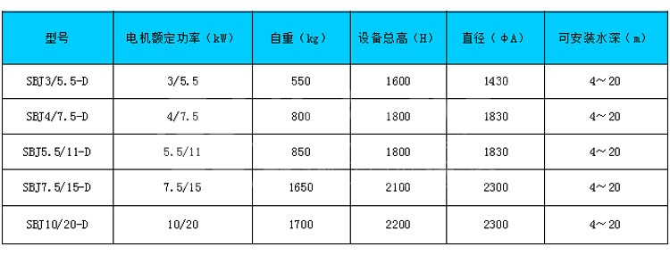 SBJ 型深水曝氣攪拌機是機電技術和生化技術的集成產品,它專為解決高濃度有機廢水,在生化處理過程中實現高 效率充氧的專用設備;主機采用雙速電機設計,具有高速曝氣低速攪拌的雙重功效,加之潛水深度可達 20m 的卓越工作性能,是傳統曝氣設備無可替代的產品。