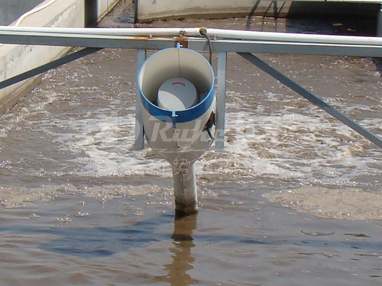 設(shè)備運行時,旋轉(zhuǎn)的葉輪在它的周圍區(qū)域形成了一個較強的負(fù)壓區(qū),從而將空氣吸入,吸入的空氣被高速成旋轉(zhuǎn)的液體強烈剪切、粉碎、乳化,氣泡直徑迅速減小,促使氧分子從氣相迅速、充分地擴散到液相中去,實現(xiàn)較佳水氣合成,同時水、氣在動力推動下向前推進(jìn),使水、氣進(jìn)一步熔解,達(dá)到曝氣和推流的目的。